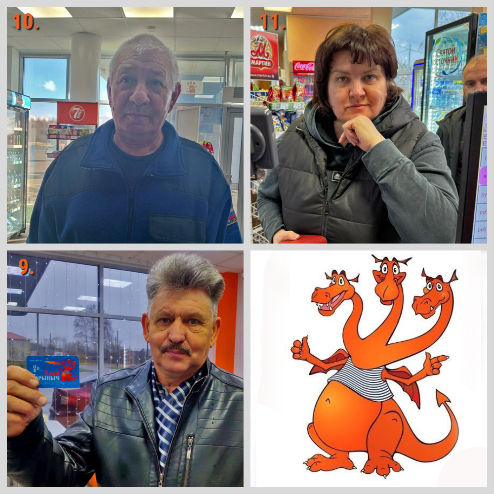 11. номинация "Добрыня": Лидия Кошкина, 20 литров предпочитаемого топлива, АЗС "Змей Горыныч" в селе Снегири на Солотчинском шоссе в Рязани.